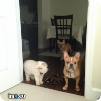 - 150x150px icon for [Aww] My girlfriend trained her pets to never enter the bedroom. This is them every morning